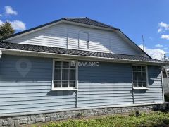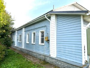 Дом из бревна- утеплен, пристройка- пеноблок. Весь обшит сайдингом.