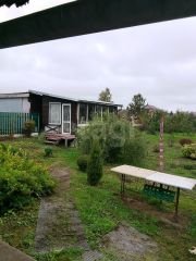 Участок полностью огорожен, благоустроен беседкой для отдыха и плодовыми насаждениями — ягодными кустами и яблонями.
