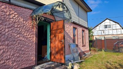 Дом крепкий, просторный, общей площадью 104,5 кв.м., на ленточном фундаменте. Стены первого этажа построены из газоблоков, покрыты декоративной штукатуркой, мансардный этаж каркасный. В доме на первом этаже: большая закрытая веранда, кухня с печкой, жилая комната; на втором этаже две комнаты. В доме есть высокий подвал. Туалет на улице, душ летний на улице. Вода (летняя), разведена по участку, заведена в летнюю кухню и душевую.