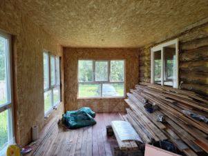 О ДОМЕ: деревянный, новый, тёплый дом на основе сруба 4*4 , остальная часть дома каркас; сваи 2-х метровые , разной глубины из-за уклона, общая площадь 42кв.м; крыша -металочерепица; большие окна ПВХ стеклопакеты(много света); пол -половая доска с гидроизоляцией +утеплитель (фасадная прессованная минвата 10см и рулонная 5см), лаги пола обработаны Сенежью 2024года