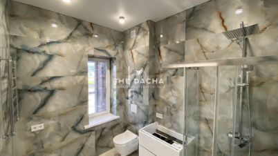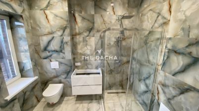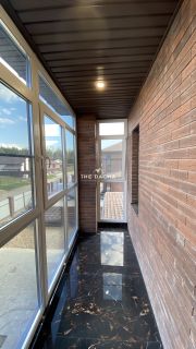 Внутренняя отделка дома под ключ: стены под покраску, полы- керамогранит, ламинат, потолок натяжной, межкомнатные двери, установлена сантехника.