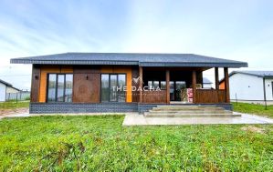 Характеристики дома: Площадь дома 150 м2 (плюс веранда 23,2м2), фундамент монолитная железобетонная плита, стены газосиликатный блок 250+ утепление 50мм + фасадные панели из лиственницы, окна качественные двухкамерные стеклопакеты, кровля мягкая черепица + утепление+ водосточная система, залита отмостка.