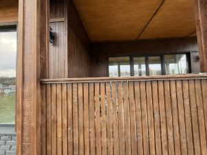 Облицовка: имитация бруса, фасадные панели. Кровля: металлочерепица с утеплением 150 мм. Окна - двухкамерные стеклопакеты с поворотно-откидным механизмом. Вентилируемые фасады и кровля. Внутренняя отделка: стены оштукатурены, полы ламинат/керамогранит, потолки натяжные. Везде установлены радиаторы отопления.