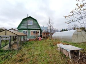 Дом построен по каркасной технологии, утеплён, обшит снаружи и внутри вагонкой, в хорошем состоянии. Оформлен, как садовый дом, т.е. нежилое строение. Нет возможности прописки и использования мат. капитала. Площадь дома 42,1 м.кв. На первом этаже: прихожая, кухня, две жилых комнаты, коридор с лестницей на второй этаж. Из прихожей есть спуск в капитальный глубокий подвал. На втором этаже две жилых комнаты, обустроены удобные ниши для хранения. Коммуникации: Электричество в доме, подаётся круглогодично. Водопровод летний от общей скважины СНТ, подаётся с мая по октябрь. Туалет на улице в хозблоке. Для отопления имеются печь и камин, отапливающие весь домик.
