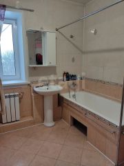 Дом с централизованными коммуникациями: газ, водоснабжение и электроэнергия. Система отопления и горячего водоснабжения обеспечивается современным двухконтурным газовым котлом Бакси. Канализация - септик. Фундамент - ленточный, железобетонный; стены - дерево (брус), утеплён и обшит сайдингом; крыша - металлочерепица.