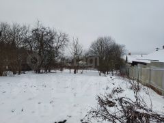 На участке прямоугольной формы с легким уклоном растут плодовые деревья и кустарники, создавая атмосферу уединения и спокойствия.