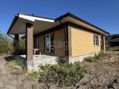 Конструкция дома демонстрирует высокое качество строительства и продуманность инженерных решений. Фундамент представляет собой монолитную плиту, а само строение поднято на 70 см от уровня земли с учетом будущего обустройства отмостки и ливневой канализации. Стены возведены из газобетонных блоков с внешней облицовкой кирпичом, между которыми организован вентиляционный зазор и уложен утеплитель. Кровля выполнена из металлочерепицы. Установлены энергоэффективные окна с двухкамерными стеклопакетами VЕКА и входная дверь с терморазрывом. Планировка включает три отдельные комнаты и просторную кухню-гостиную. Ключевой элемент гостиной зоны — панорамное французское окно с выходом на собственную террасу площадью 15 кв. м. На входе обустроено крыльцо. Объект готов к продаже и обладает значительным потенциалом для дальнейшего развития территории.