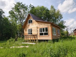 О ДОМЕ:деревянный, новый, тёплый дом на основе сруба 4*4 , остальная часть дома каркас; общая площадь 42кв.м; крыша -металочерепица;большие окна ПВХ стеклопакеты(много света); в доме одна комната, кухня и терраса, есть возможность сделать комнату на 2-м этаже; не зарегистрирован.