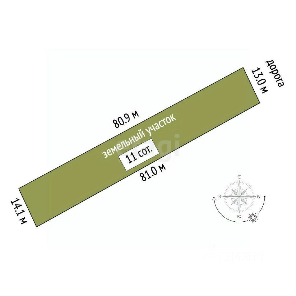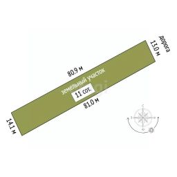 Участок площадью 11 соток прямоугольной формы с пропорциями 80 на 14 метров предлагает рациональное и удобное использование пространства для строительства капитального дома.