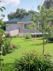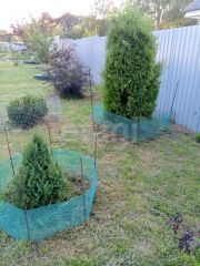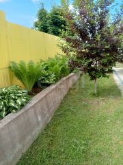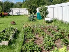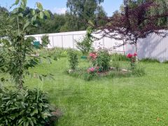 Участок общей площадью 9,45 соток, ухожен, с хорошим качественным низкорослым газоном, редкими декоративными деревьями и кустарниками, цветниками, плодовыми деревьями и прочим.