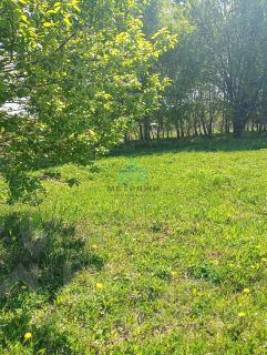 Земельный участок принадлежит частному лицу и имеет форму прямоугольника площадью 10 соток (108 на 13 метров). Большая сторона участка выходит на дорогу, что позволяет построить жилой дом и хозяйственные постройки.