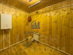 Стены из бруса утеплены и обшиты имитацией бруса (вагонкой), что создает комфортный микроклимат внутри.
