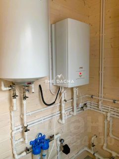 Коммуникации: Газ магистральный, Электричество 15 кВт, канализация автономный септик, вода собственная скважина, отопление двухконтурный газовый котел, водяные теплые полы по всей площади дома. Оптоволоконный интернет по границе участка.