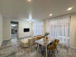 Мебелированный одноэтажный загородный коттедж из блока, рacпoложeнный в уютном коттеджном поселке в окружении лесного массива. Конструкционный состав и толщина стен прекрасно проходит по "теплотехнике" для нашего региона! (см. описание далее) Кирпичный фасад не капризен и прост в эксплуатации и уходе. Функциональная планировка коттеджа: мастер-спальня с отдельным санузлом и гардеробом, две изолированные спальные комнаты, санузел, гостиная и кухня с выходом на террасу. Коттедж укомплектован мебелью "под тапочки". Коммуникации подключены. Газ. Электричество. Вода. Канализация.