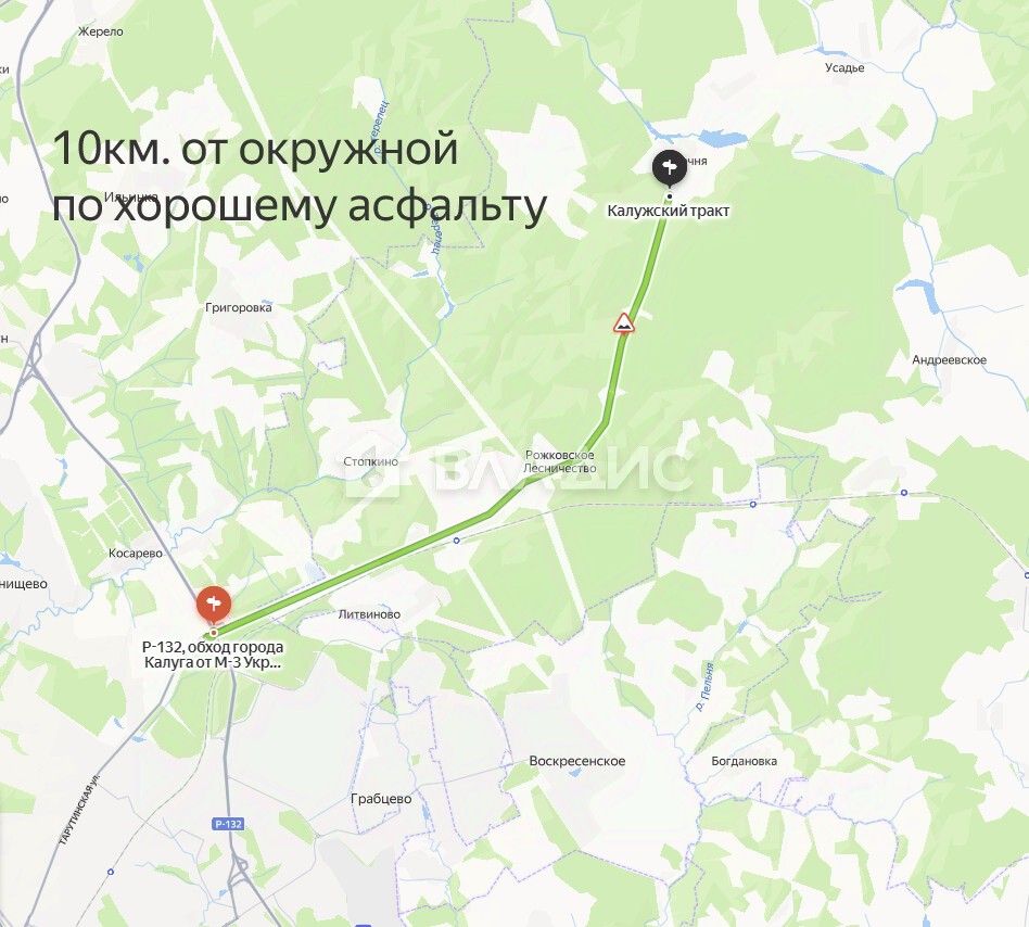 уникальный участок в тихом тупиковом месте д. Песочня, Калужская область, Ферзиковский район, за Ястребовкой в 10 км от Окружной дороги (Ольговка, Малинники). Направление было старой Калужской дорогой на Москву (Калужский Екатерининский тракт).
