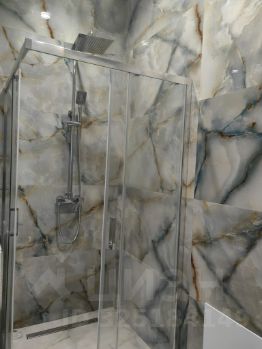 Внутренняя отделка - плитка, декоративная штукатурка.