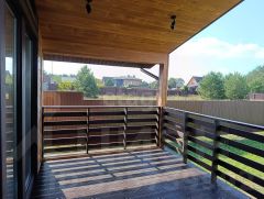 В кухне-гостиной — панорамные окна и выход на собственную террасу площадью 21 м².