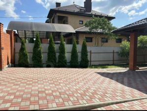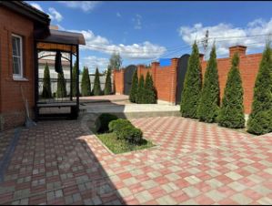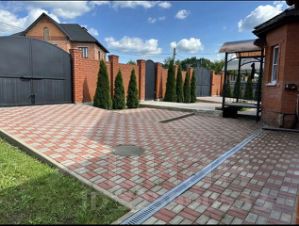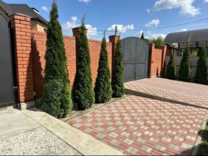 Участок ухожен: на нем уложена плитка, высажены туи и газон. Обратите внимание, что все коммуникации центральные, а подъездная дорога асфальтирована.