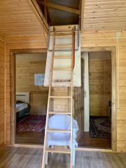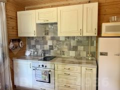 Площадь дома включает три комнаты на первом этаже и мансардный уровень, который можно использовать как дополнительное жилое пространство. Лестница на второй этаж скрыта, что сохраняет эстетику интерьера. Просторная веранда примыкает к дому, создавая зону для отдыха. Кухня оборудована новым гарнитуром со встроенной техникой проверенных брендов. На участке есть все необходимое для комфортного проживания: новый хозблок, туалет с эффективной вытяжкой, душ с подогревом воды и насосом, а также колодец с постоянным запасом воды.