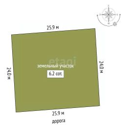 Площадь участка 6,24 сотки. Очень большим плюсом являются центральные коммуникации. Газ по границе, электрический столб возле участка, также по части участка проходит подземный кабель.