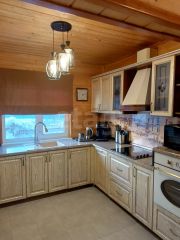 Инфраструктура и коммуникации: Интернет( оптоволокно ); электричество — 15 кВт; водоснабжение — скважина, обслуживает 4 дома; переливной септик (камеры 3+2 кольца); электрическое отопление. Можно провести газ, все подведено под газовое отопление. Ленточный фундамент 1,5 м. Отдельный выход на террасу, двор выложен брусчаткой. В доме имеется погреб.