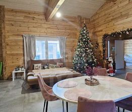 Баня площадью 120 квадратных метров, построенная из бруса 260 мм, с гостиной и комнатой отдыха, на данный момент используется как жилой дом. Это идеальное место для отдыха и расслабления после долгого дня.