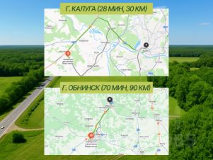 Участок находится в деревне Кумовское. Ключевое преимущество — расстояние всего 700 метров до федеральной трассы М-3 "Киевское шоссе", с удобным съездом и асфальтированным подъездом. Логистическая доступность отличная: 30 км до Калуги, 90 км до Обнинска, 130 км до Тулы, что идеально для производственных и дистрибьюторских центров.
