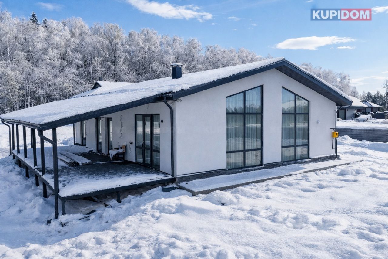 Планировка : крыльцо,прихожая,бойлерная,сан.узел,просторная кухня-гостинная с высоким потолком;панорамным остеклением и выходом на террасу,3 изолированные спальные комнаты 2 из которых мастер спальни(собственный сан.узел).Итого в доме 3 комнаты 3 сан.узла.