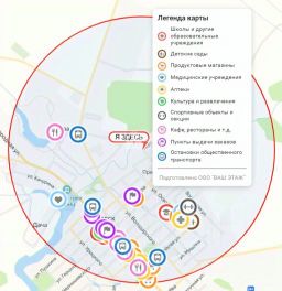 Подробнее об инфраструктуре (указано время ходьбы)