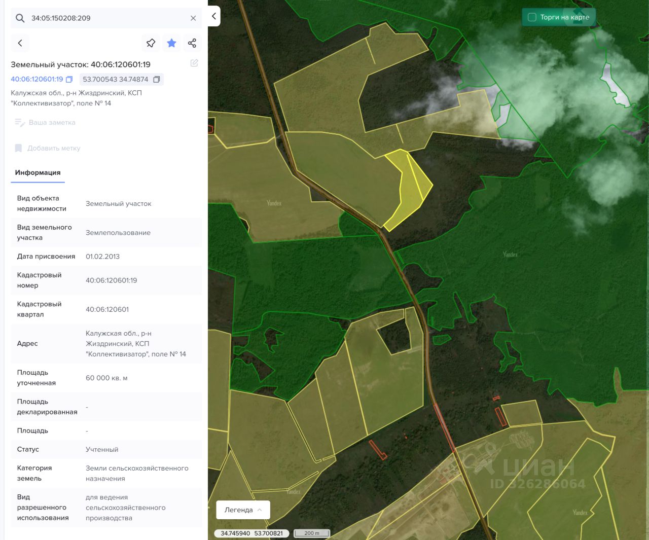 6 га, КН 40:06:120601:19 — 80 000 ₽/га