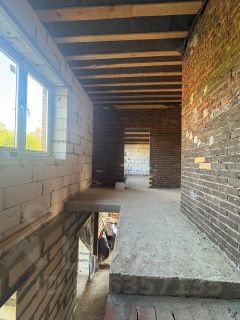 Строение выполнено из надежных пеноблоков и облицовано кирпичом, что обеспечивает отличную тепло- и звукоизоляцию. Данный дом построен в 2023 году, имеет прочный ленточный фундамент и бетонные перекрытия, что гарантирует долговечность и надежность. Мягкая черепица на крыше не только придает эстетический вид, но и улучшает звукоизоляцию.