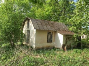 На участке небольшой домик, можно применить для будущих строителей.
