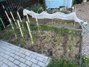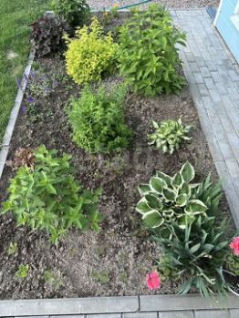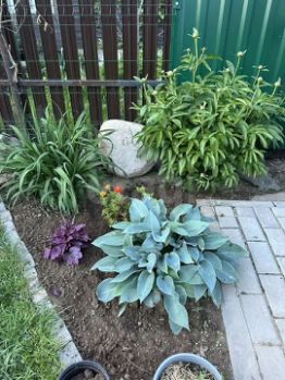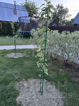 • Участок 4 сотки: цветник с живыми цветами, грядки для овощей (огурцы, лук), плодовые деревья (яблоня, груша, слива).
