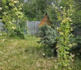 Участок правильной прямоугольной формы, ровный, с продуманным ландшафтом: здесь высажены плодовые деревья и декоративные растения, создающие приватную и эстетичную атмосферу.