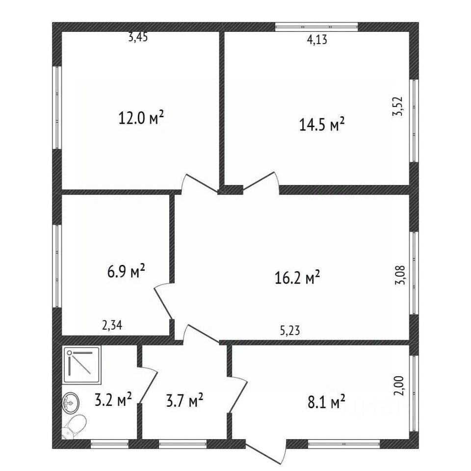 Планировка функциональна: на первом техническом этаже расположена котельная с двумя котлами (электрическим Protherm и твердотопливным), подсобные помещения и хранилище. Второй этаж — жилой, с тремя изолированными комнатами площадью 16.2, 14.5 и 12 кв. м, кухней 6.9 кв. м и совмещенным санузлом с душевой кабиной. Высота потолков 2.67 метра создает ощущение простора. В доме есть веранда, проведены горячее и холодное водоснабжение от собственной скважины, установлен водонагреватель, работает канализация на основе септика. Подведены электричество, телевидение и интернет. Участок благоустроен: здесь находится кирпичная баня, плодово-ягодные насаждения и сад. Существует возможность газификации, так как магистраль подведена к поселку. Объект продается одним собственником, документы полностью готовы к сделке. Рассматриваются различные варианты расчетов, включая ипотечное кредитование, использование материнского капитала и военную ипотеку.