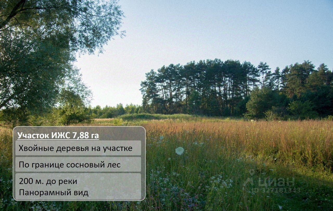 Ижс 7,88 га с хвойными деревями + сосновый лес по границе. Река Ока в 200 м.
