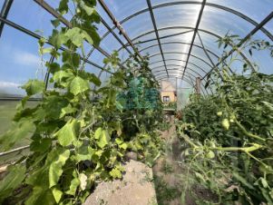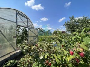 На участке хоз. постройки, 2 большие теплицы, cад, участок ухоженный.