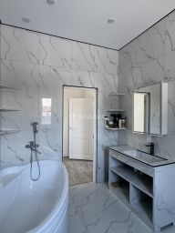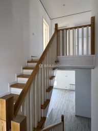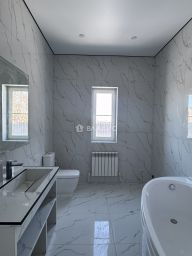 Планировка: 1 этаж : прихожая, котельная, кухня с выходом на закрытую террасу (можно пристроить открытую террасу), гостиная, комната, сан.узел; 2 этаж: три комнаты, сан.узел, гардеробная. Во всем доме установлены качественные стеклопакеты - поворотно-откидные двухкамерные с москитными сетками.