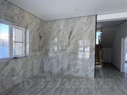 Дом 2х этажный площадью 220 м2 построен из газобетонных блоков 250 с наружным утеплением 5 на монолитной армированной плите. Крыша металлочерепица, установлены водостоки. Облицовка дома сайдинг под кирпич.