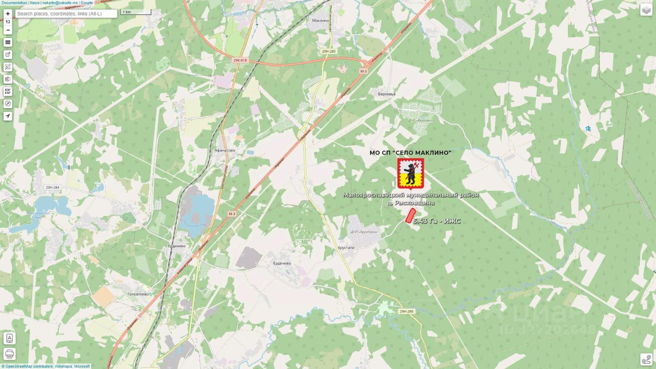 Съезд - 125 км Киевского ш. (до границы ТиНАО Новая Москва 42 км). Удаленность от шоссе 7 км по хорошей асфальтированной дороге, через д. Хрустали.