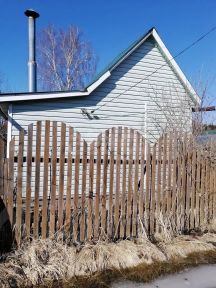 Земля - 3,92 сотки, огорожено деревянным забором.