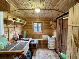 Также, на участке есть стационарная коптильня горячего копчения, летний туалет, бытовка для хранения вещей. Подготовлен заезд и парковка для автомобиля.