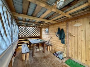 На участке расположена баня 2022 года постройки с беседкой и комнатой отдыха. Вода круглогодичная, электричество подведено. Внутри есть душевая с горячей водой, которая нагревается от бойлера. Беседка перед входом в баню с большим столом и скамейками готовы принять дружную компанию.