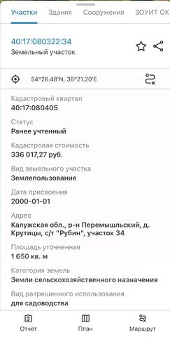 Предлагается к продаже земельный участок расположенный по адресу:Калужская обл., Перемышльский р-н, сельское поселение Большие Козлы, садоводческое товарищество Рубин, 34