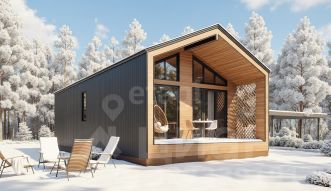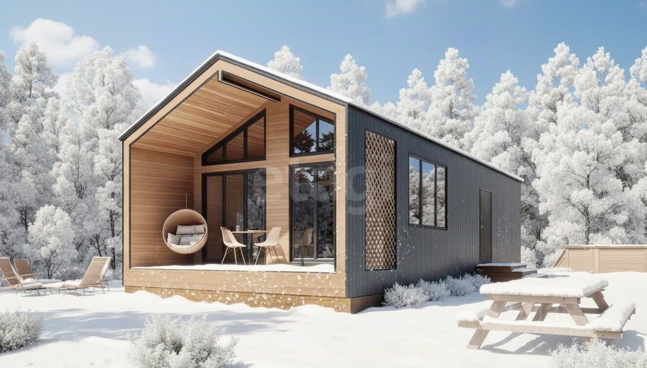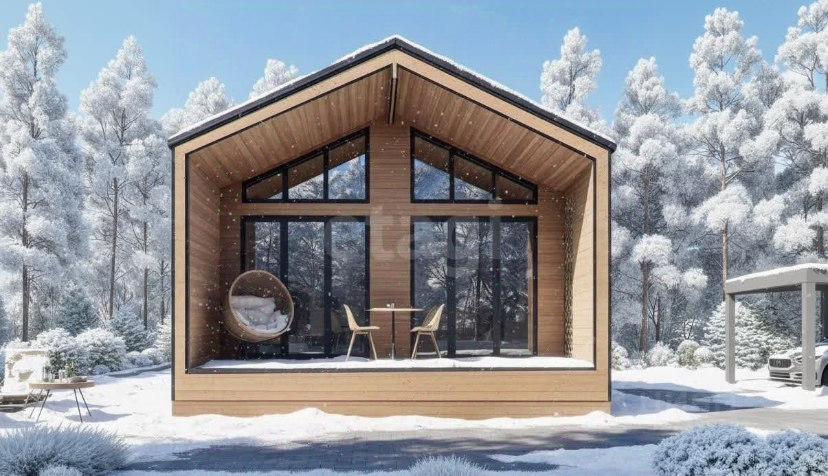 Небольшой уютный дом с двумя комнатами, кухней-гостиной и терассой.