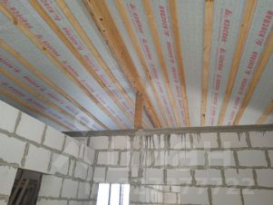 Фундамент монолитная железобетонная плита 250мм; Стены и перегородки газоблок D500 BONOLIT, толщина стен 250мм; Кровля утепление 250мм минеральная вата, кликфальц Grandline, отмостка вокруг дома.