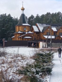 Тихая деревня Сосенка, Козельский район. Близость к лесу и живописный вид на скит делают это место особенным.