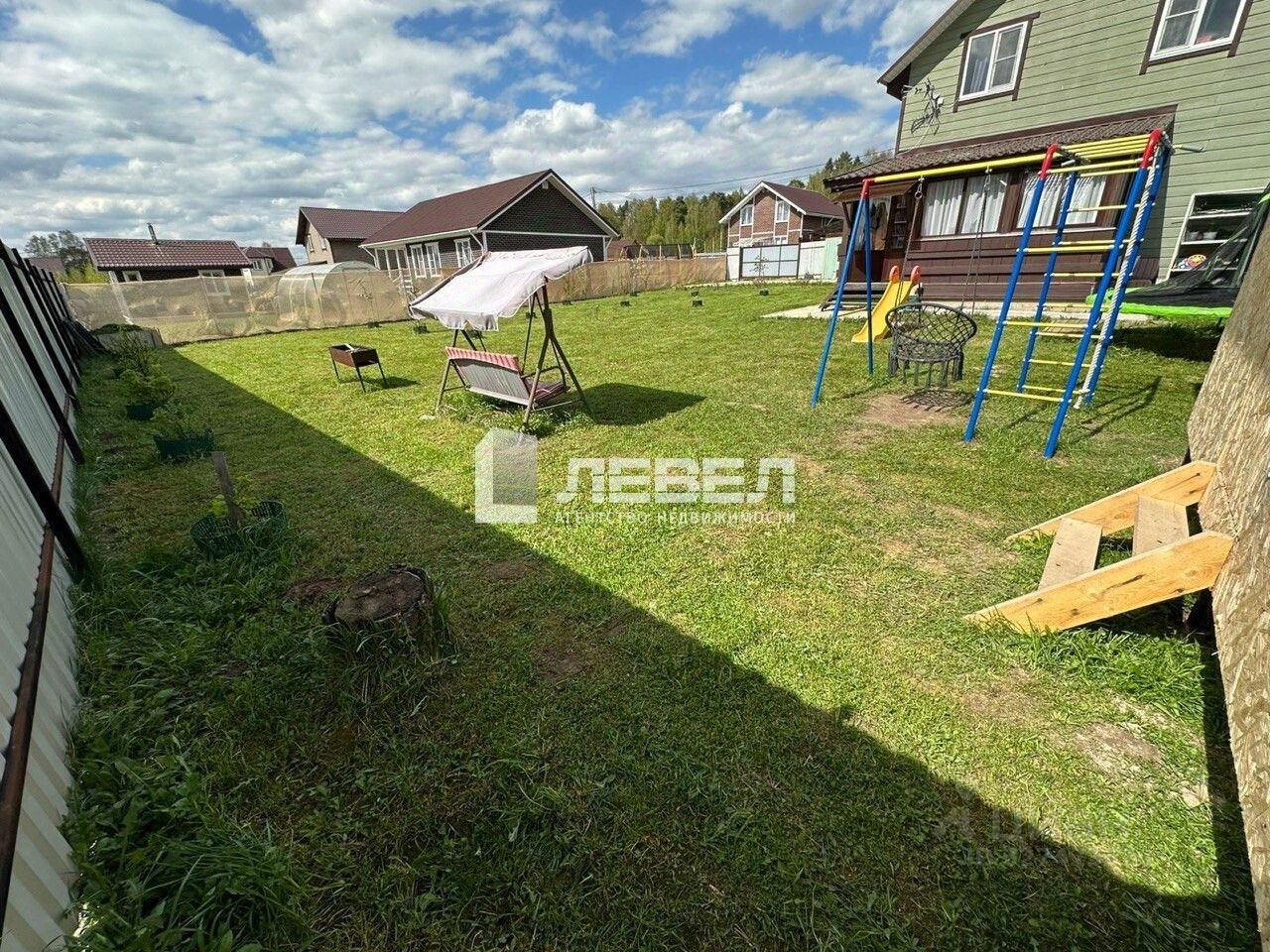 Также на участке есть детская площадка, турники и качели, песочница и еще качели гнездо.