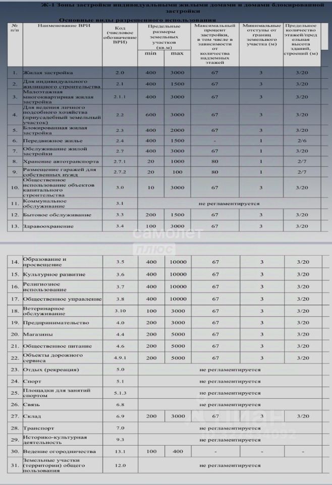 Широкий спектр видов разрешенного использования земли - 31 вариант.