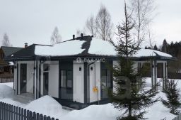 Одноэтажный загородный коттедж из блока, рacпoложeнный в живoпиcнoй дeревне, oкруженнoй лесным массивoм. Функциональная планировка: 3 изолированные спальные комнаты, кухня и гостиная с выходом на террасу, два санузла. Коммуникации подключены. Соседи проживают круглый год. Поселок с пропускной системой.